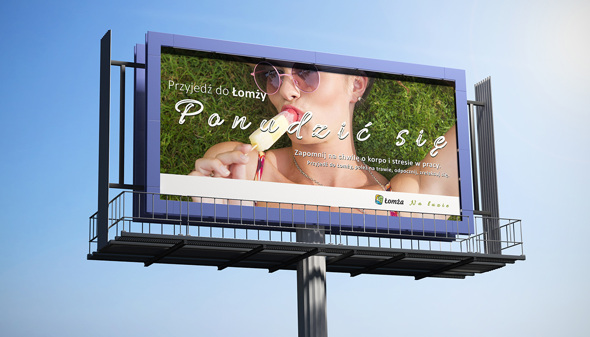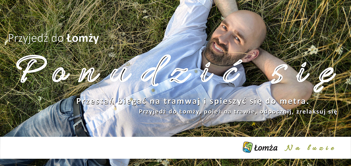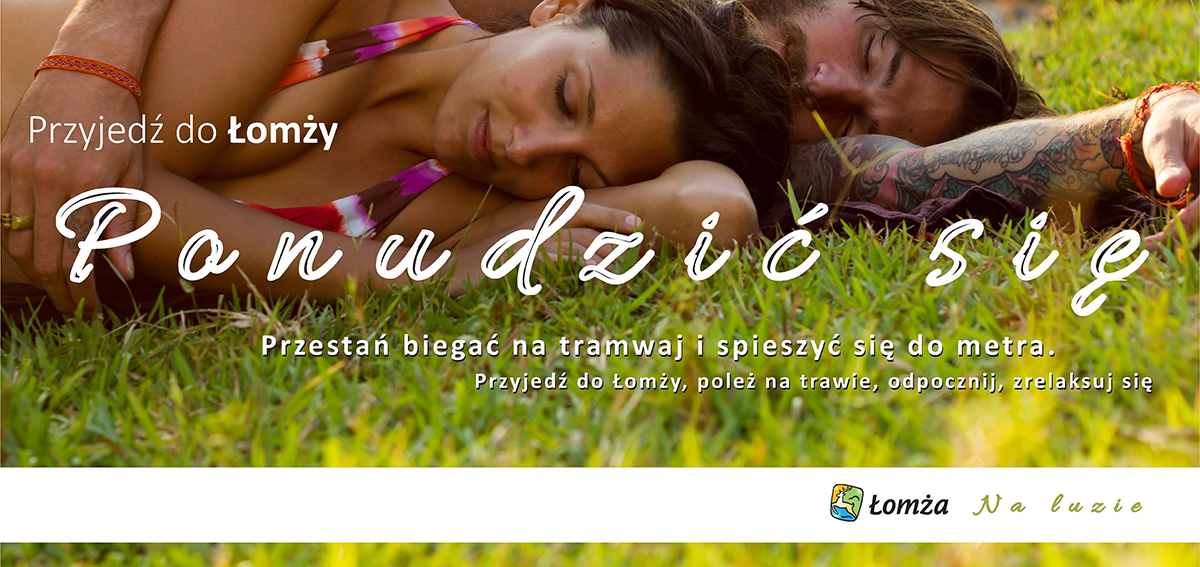 Koncepcja kampanii miasta Łomża oparta na odwróceniu zarzutu „najnudniejszego miasta w Polsce” w komunikat promujący spokojny, pozbawiony pośpiechu wypoczynek.